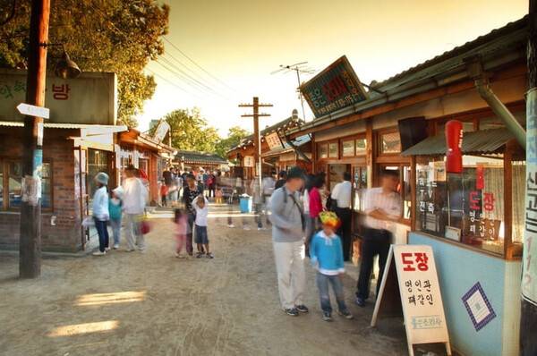 You can see old barbershops, comic book stores, traditional cafés, and vintage photo studios. Visitors can listen to classic Korean music, try traditional street games, and even take black-and-white photos in old-style school uniforms.